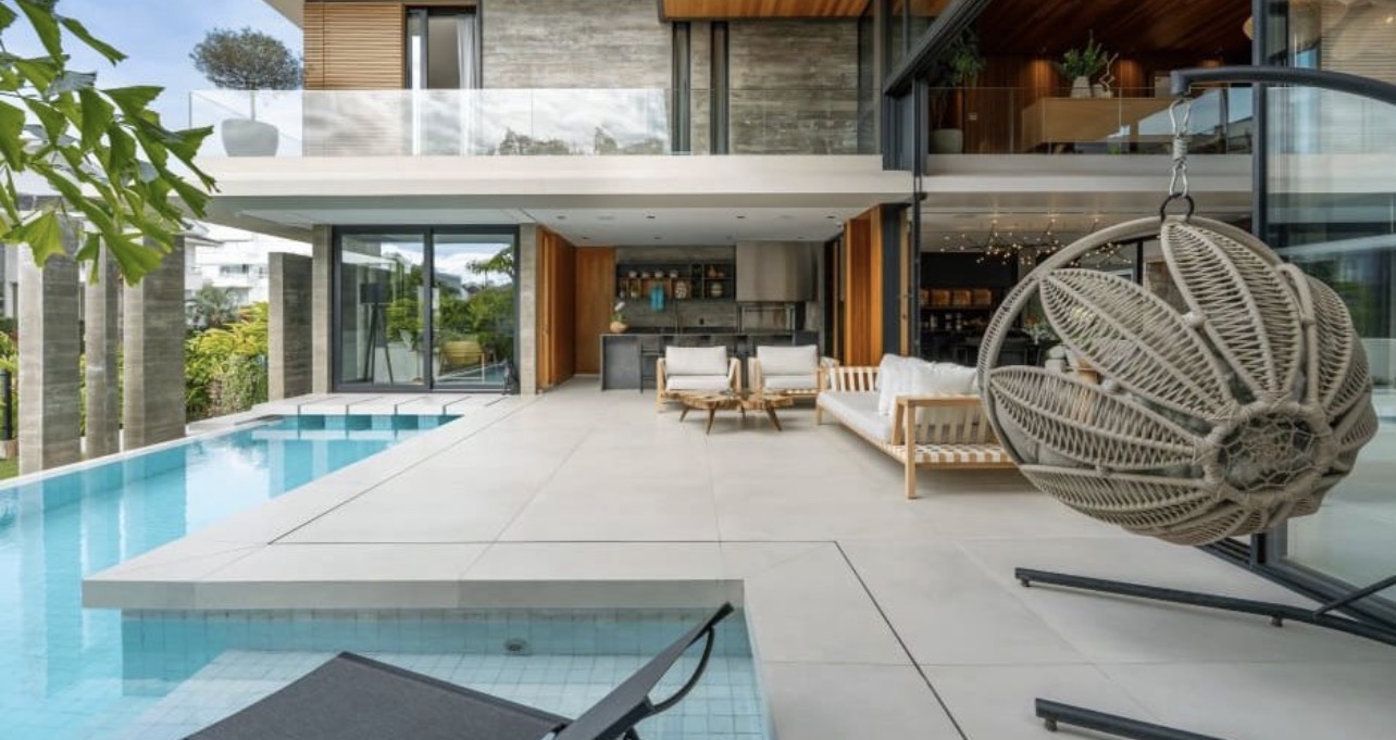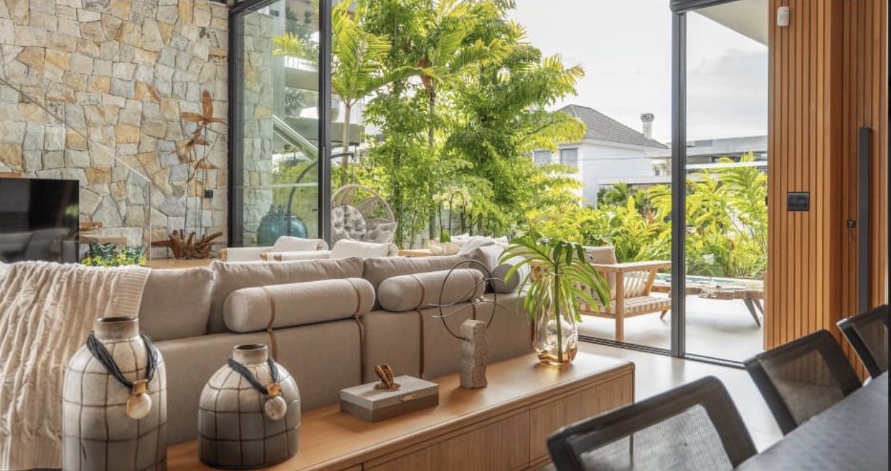 a poucos passos do mar, com arquitetura que valoriza luz, integração e presença.