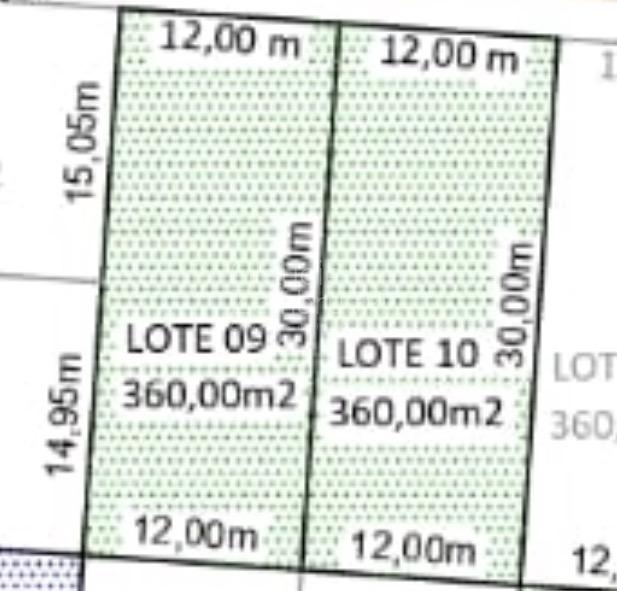 Vendem-se Lotes 09 e 10, com 360m² de área cada (12x30).